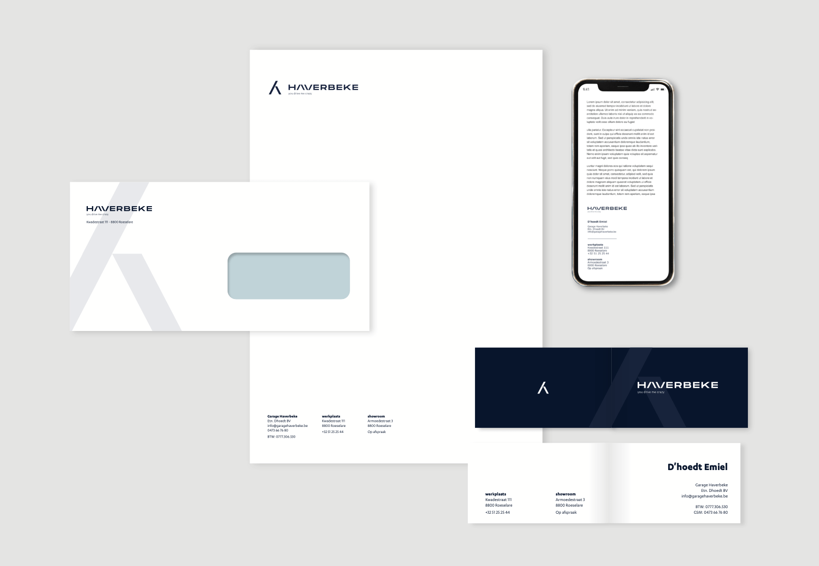 Garage Haverbeke is een gevestigde waarde in Roeselare en omstreken. Klanten kunnen er terecht voor een nieuwe auto van verschillende merken, maar ook voor oldtimers van het merk Porsche én voor een uitstekende, persoonlijke service. Onlangs werd de garage overgenomen door Emiel, gepassioneerd autoliefhebber en trotse Roeselarenaar. Hij koos ervoor om een nieuwe weg in te slaan waarbij wij zorgden voor de verfrissende rebranding.