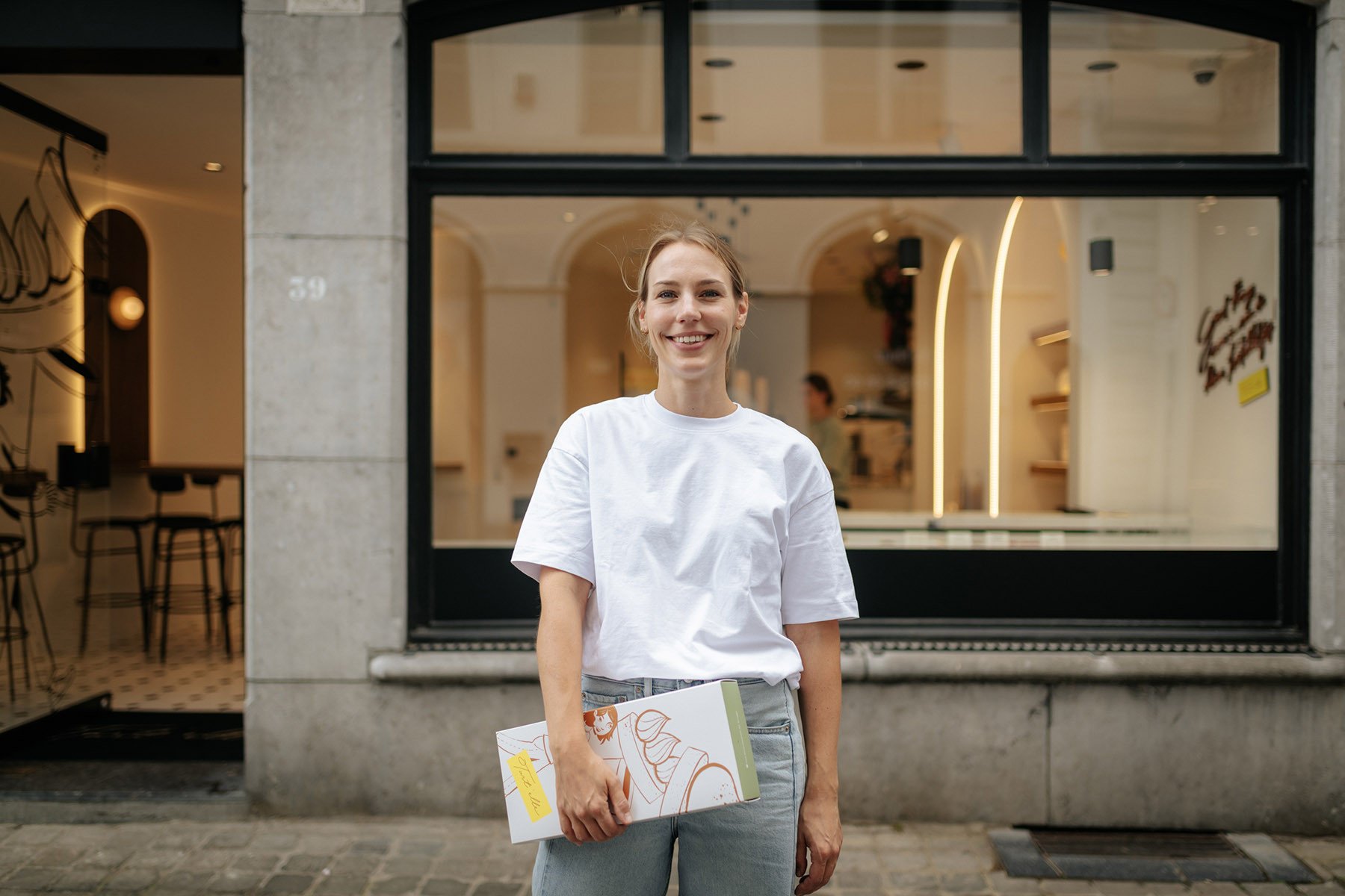 Van deurbelettering tot packaging, van naamkaartjes tot servetten, van cadeaubonnen tot T-shirts: alles vormt één zoet merkverhaal.